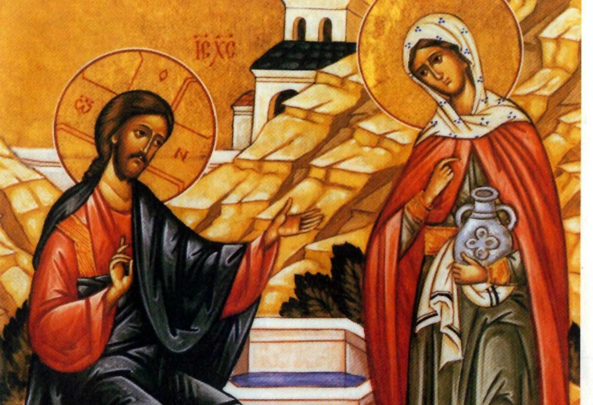 In the Gospel reading this morning, we see Jesus interacting with a Samaritan woman. The woman arrives at noon. Now this is very unusual as most would come to draw water in the morning or evening when the temperatures are cooler. It was also a time of socializing and sharing. The woman coming alone suggests she is socially isolated, avoiding others, or maybe carrying some shame. She is living out her “water jar” of burdens. But there she encounters Jesus. What an unusual place to rest from a journey for Jesus, as it likely was not the most shaded place and there would be far better places to rest.